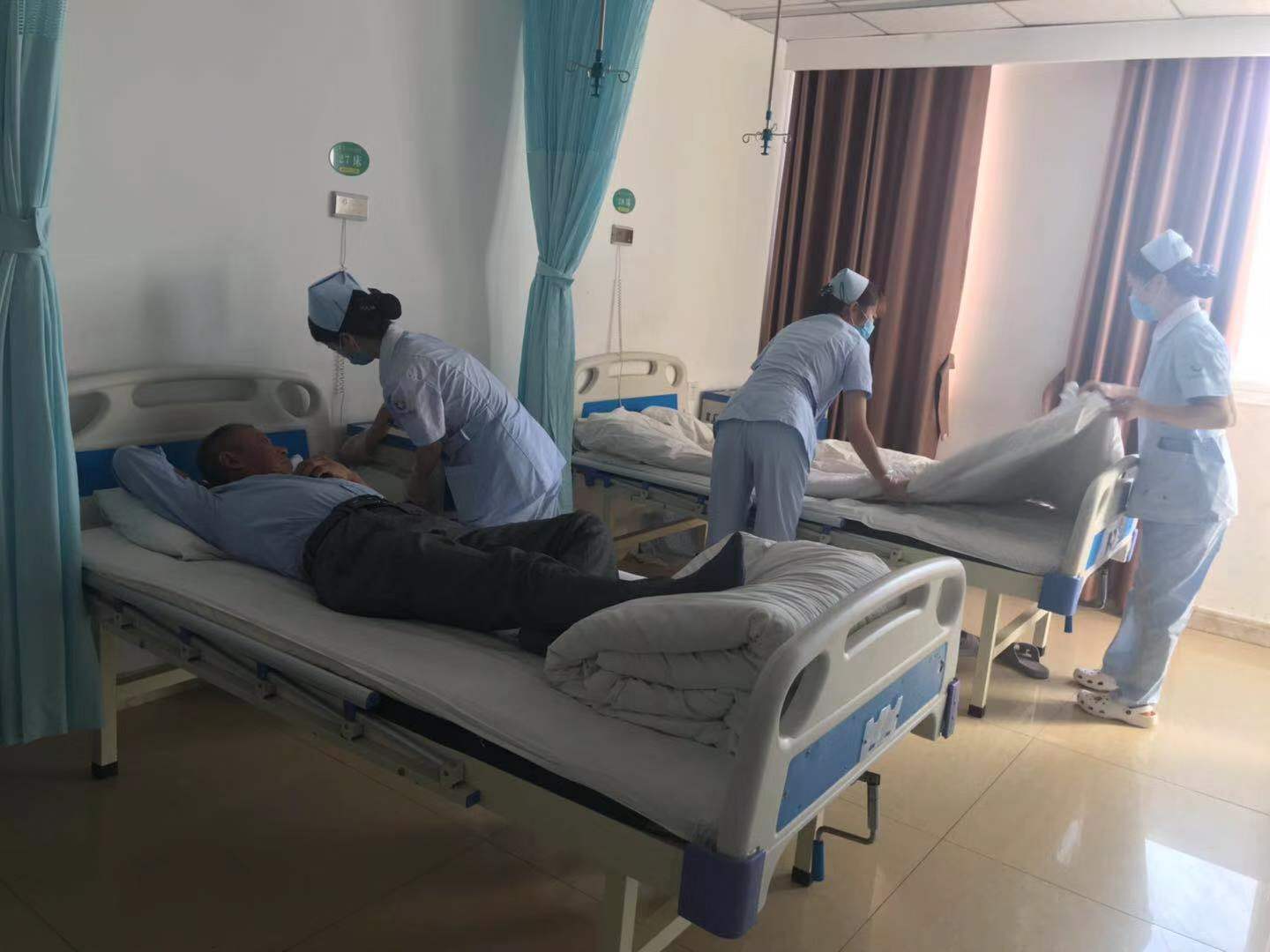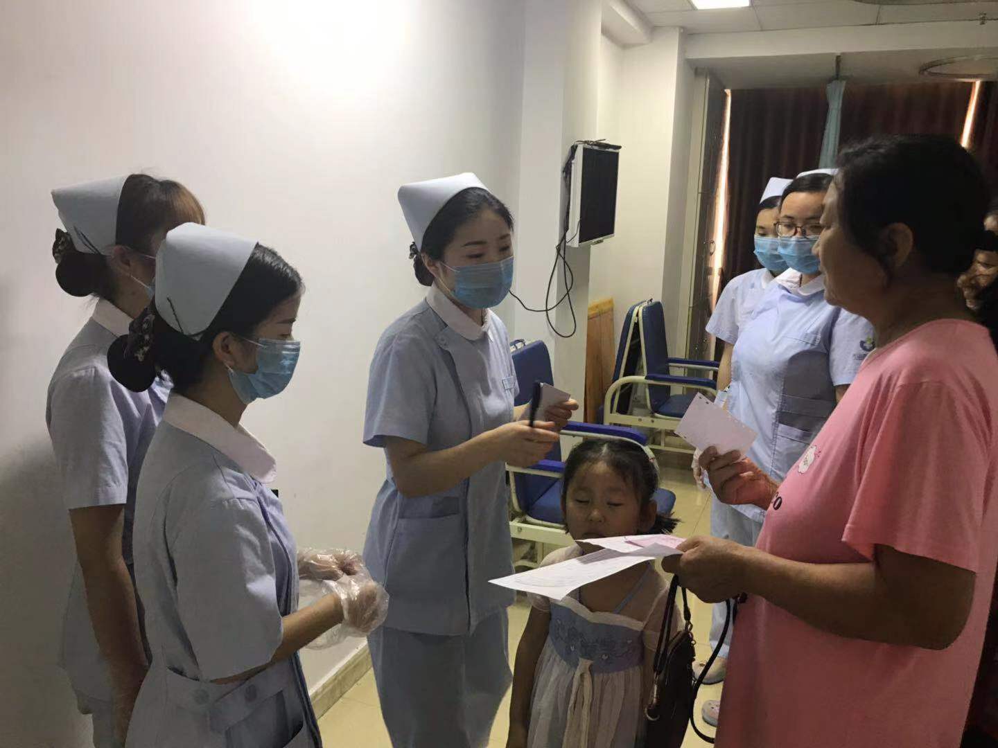 开完早会,医师们开始查房,护士们开始扫床,查房,为病人输液,像一只只白鸽子,微笑着穿梭于病房中……